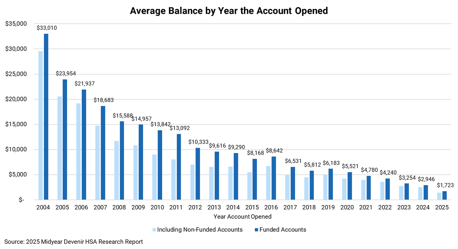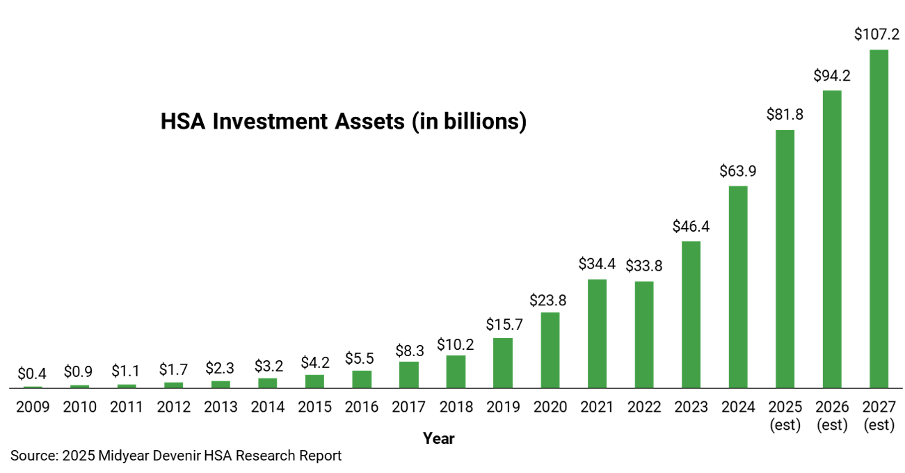 - Market momentum amplifies asset growth. Supported by favorable markets, HSA assets expanded meaningfully in the first half of 2025. By midyear, assets reached nearly $159 billion across about 40 million accounts, up 16% year-over-year for assets and 6% for accounts..